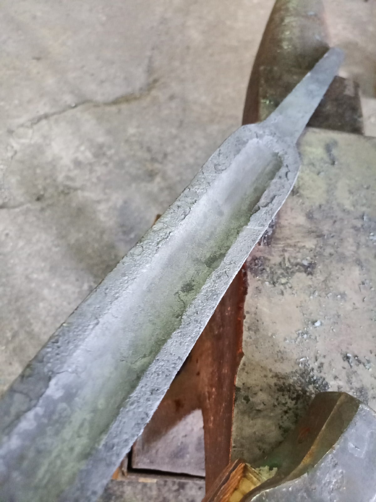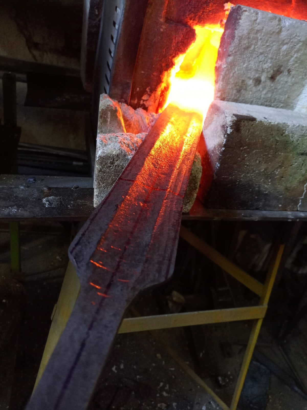 La placa de prueba no salió sin defectos, pero para eso mismo sirve: para afinar la técnica. Se han sacado conclusiones, y los márgenes y correcciones necesarios según el comportamiento real del acero durante la forja ya están anotados en el “cuaderno secreto”. 🙂